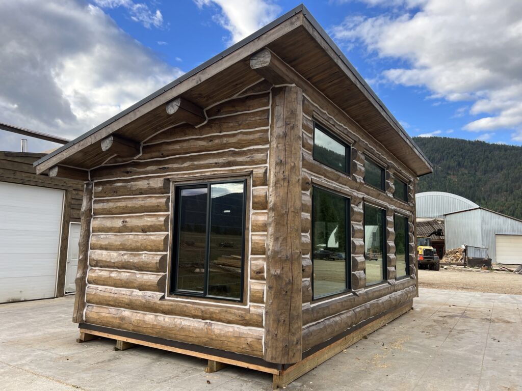 Cabins with dimensions 12' x 20' - 40' Subfloor: 2x6 floor joists 16" o.c., double rim board, 3/4" osb tng subfloor, insulated 3" insulation foam board (R16), can be installed on existing foundation or stand-alone. 7' sidewalls, stained and chinked interior and exterior, 1 basic man door + 4 basic vinyl windows (4x4' or smaller) installed and trimmed on exterior only. 6/12 pitch roof, full log purlins, 1x6" knotty pine tng ceiling, 2x6 rafters, 3" insulation foam board (R16), 5/8" osb sheathing w/ vapor barrier, 29g metal roofing installed.