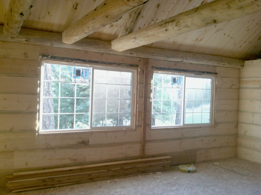 The holes for the sauna tubes were set and poured on Tuesday, October 1, 2013, and the roof and windows were installed by Friday, October 11. By the beginning of November, after taking one week to do another job, we had finished the circular sawn flooring and staining.
